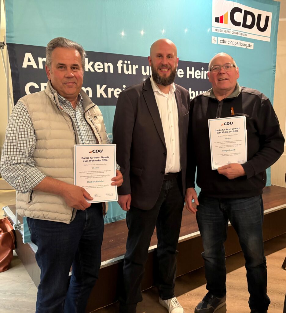 Im Rahmen der Mitgliederversammlung wurden zudem Herbert Neteler für 25 Jahre Mitgliedschaft und Ludger Preuth für 40 Jahre Parteizugehörigkeit in der CDU geehrt.
